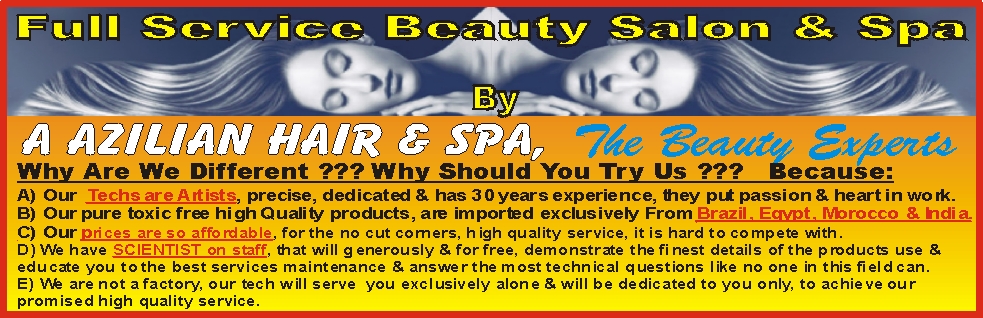 Techs, Genuine Brazilian Keratin, Professional Hair Colors & Highlights, Brazilian Wax, Facials, Acrylic, Gel, Nails Art, come & experience it for